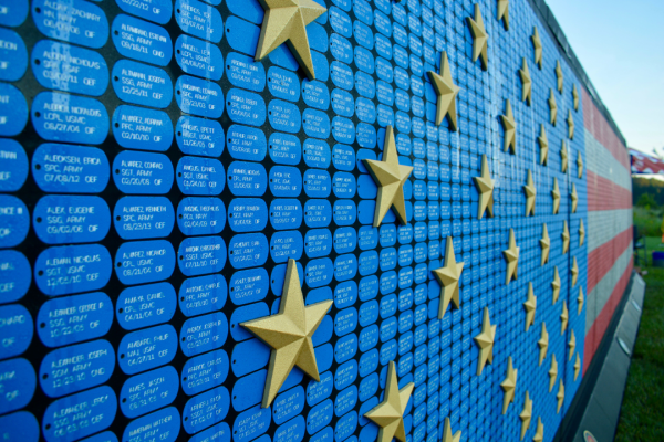 The Fallen Heroes Memorial Wall, from Veterans and Athletes United, has been traveling across the country and was present at the Honor and Remember Run as a moving tribute to the nation’s service members who made the ultimate sacrifice. The memorial bears 7,040 dog tags, each engraved with the name and date of death of a service member killed since 9/11. It's 50 stars honor all Gold Star families, who have lost sons and daughters in the Global War on Terror.