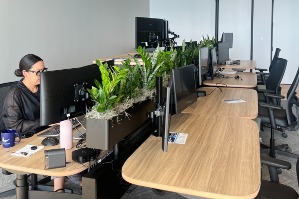 A great example came up recently: while finalizing an install, a COO mentioned she wished she could reorient her desk so she wasn’t staring directly at her staff. Since that wasn’t possible, we used plants to create perceived privacy—offering just enough visual distraction to foster focus and comfort.