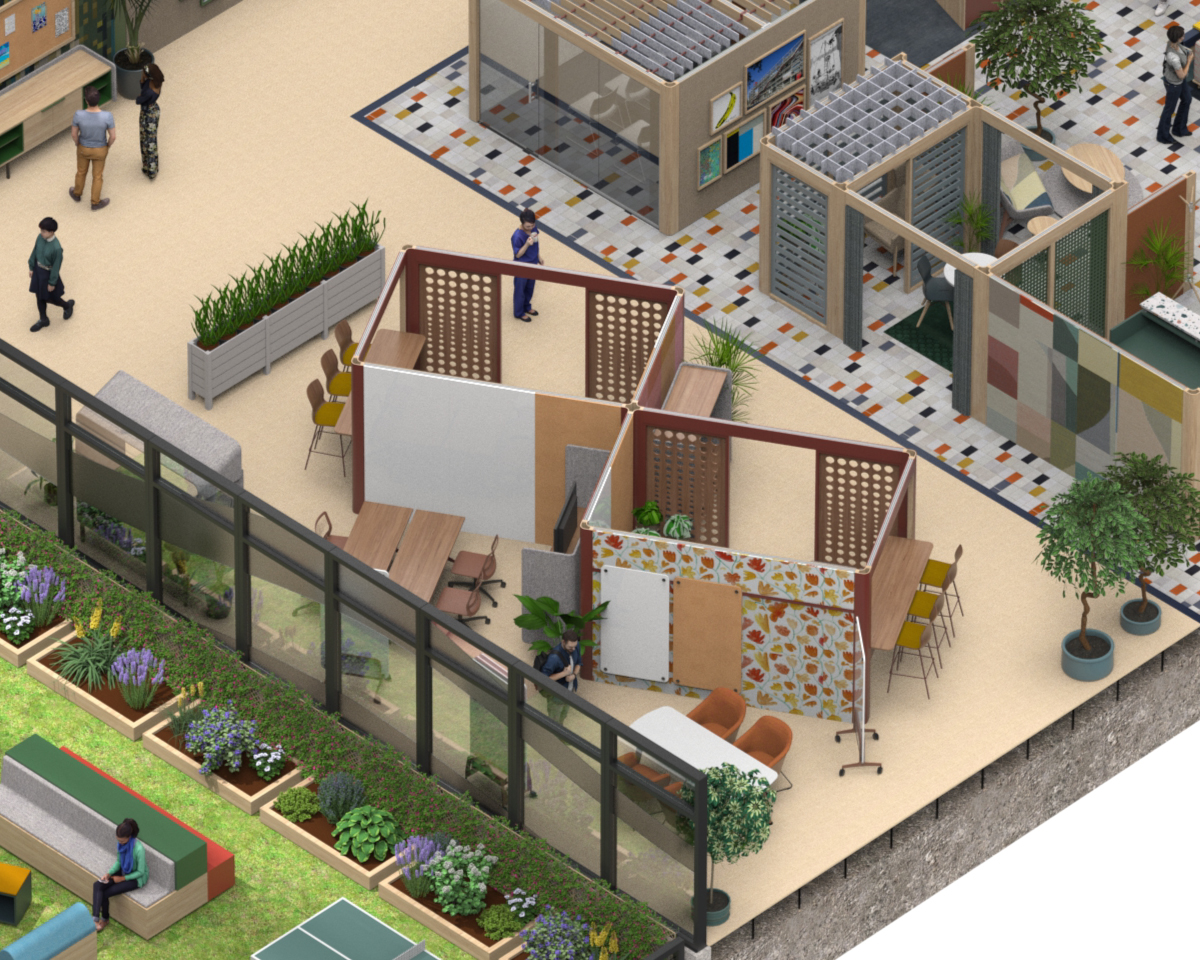 - Biophilic space division helps to reduce stress, improve cognitive function, and enhance mood and creativity